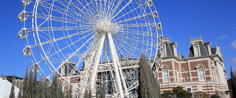 장내의 거의 중앙에 위치해 푸른 하늘을 배경으로 세우는 모습이 아름다운 순백의 관람차는 마치 행복의 상징처럼. 낮에는 유럽의 거리를, 밤에는 일루미네이션 한눈에 볼 수 있고, 회전에 맞추어 옮겨가는 절경은 필견입니다. 밤에는 관람차 자체도 라이트 업되어 낮과는 다른 표정을 보여줍니다.