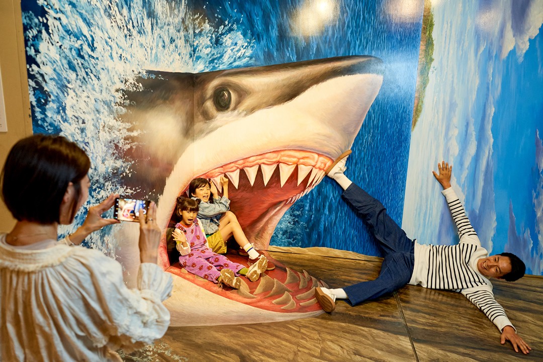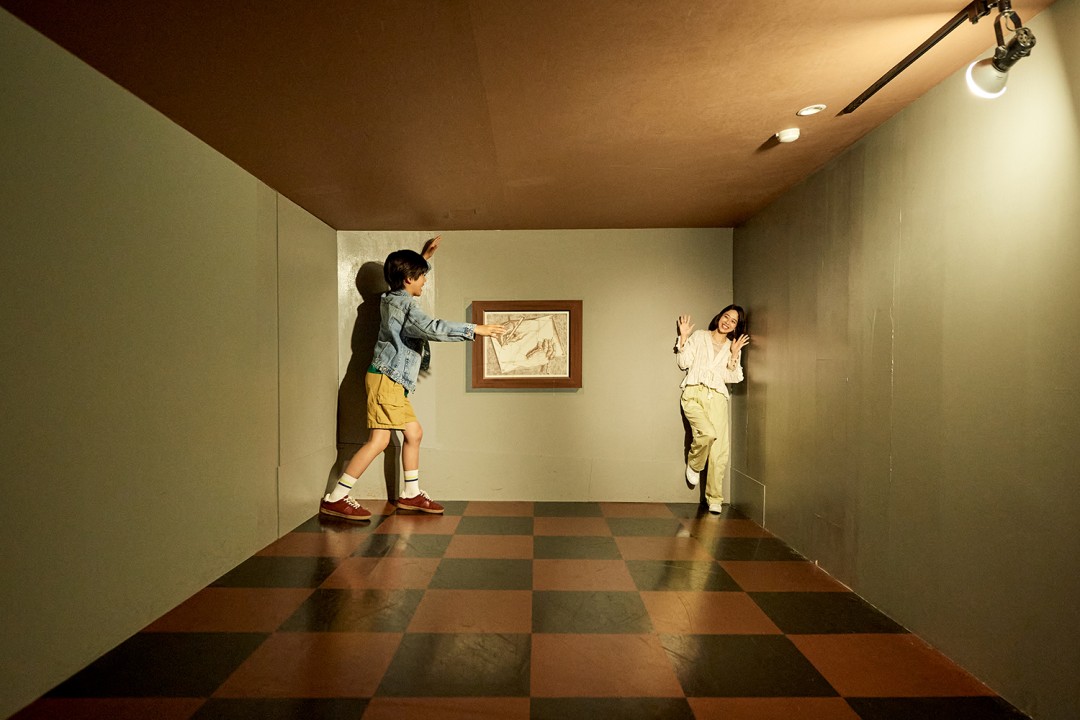신기한 세계에 헤매는 듯한 감각이 되는 트릭 아트의 관입니다. 사람이 공중에 떠있는 것처럼 보이는 방이나 벽을 찢는 공룡 등 원근법이나 조명을 이용한 눈의 착각을 즐기는 아트 작품이 대집합. 실제로 터치하거나 보는 각도를 바꾸면서 트릭 아트를 체험하십시오.
