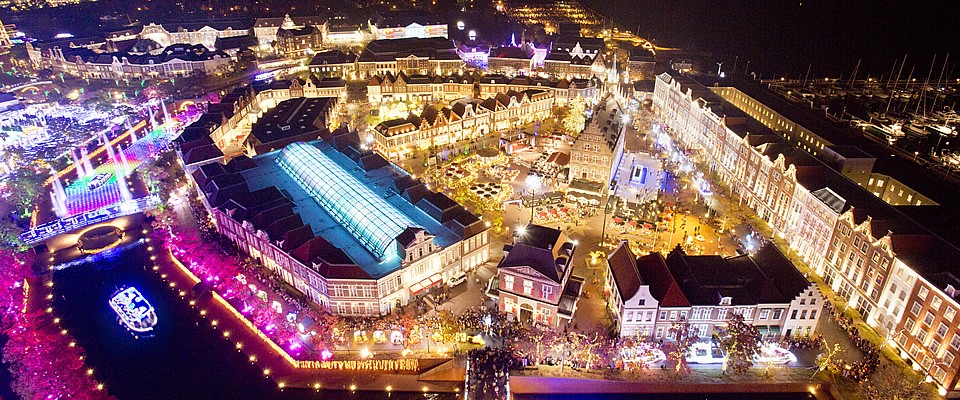 장내 어디서나 눈에 띄는 큰 표지로 존재감을 발하는 하우스텐보스가 자랑하는 심볼 타워. 엘리베이터로 지상 80m에 있는 전망실에 오르면, 장내의 전경은 물론, 오오무라만 바라볼 정도의 절경이 펼쳐져 있습니다. 또, 밤의 빛나는 거리 풍경도 놓칠 수 없습니다.