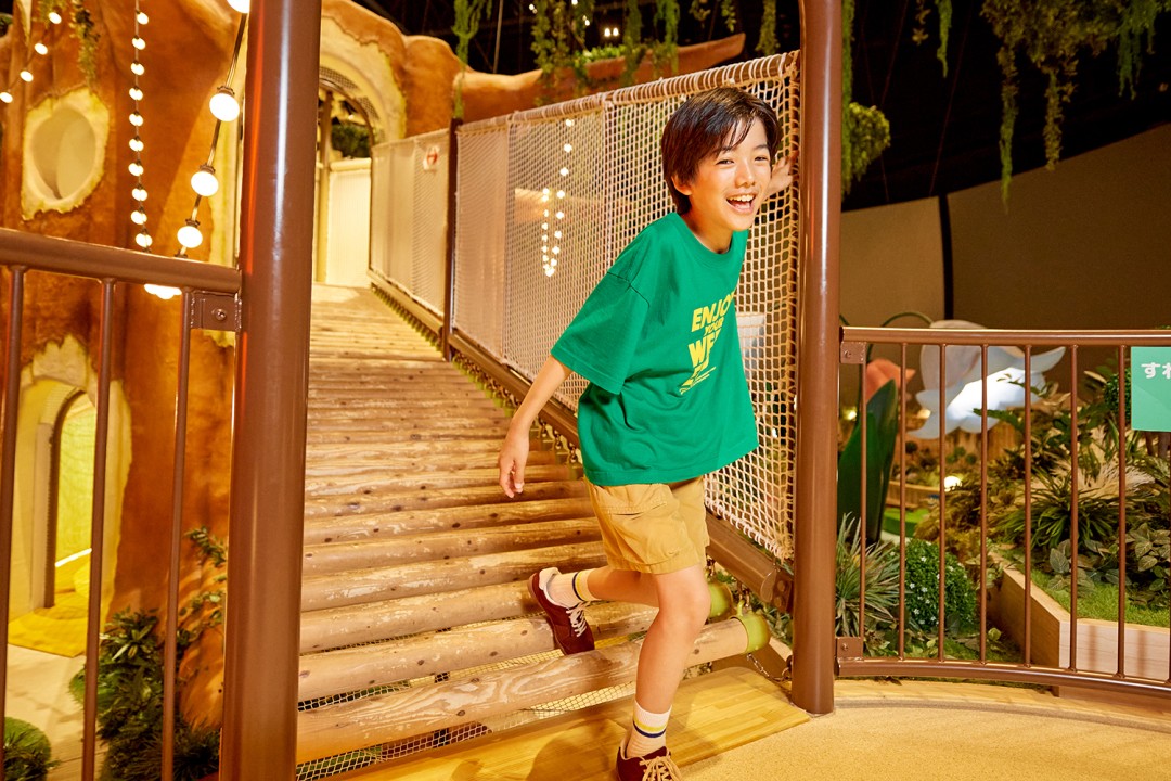 거대한 숲 속에 로프넷이나 볼 그네, 트램폴린에 미끄럼틀 등 많은 놀이기구가 모이는 키즈용 실내 어슬레틱 시설. 다리를 밟은 순간부터 마치 그림책과 같은 세계가 펼쳐져, 마음과 기분으로 놀 수 있습니다. 유아용 지역도 있으므로, 작은 아이에게도 안심입니다.
