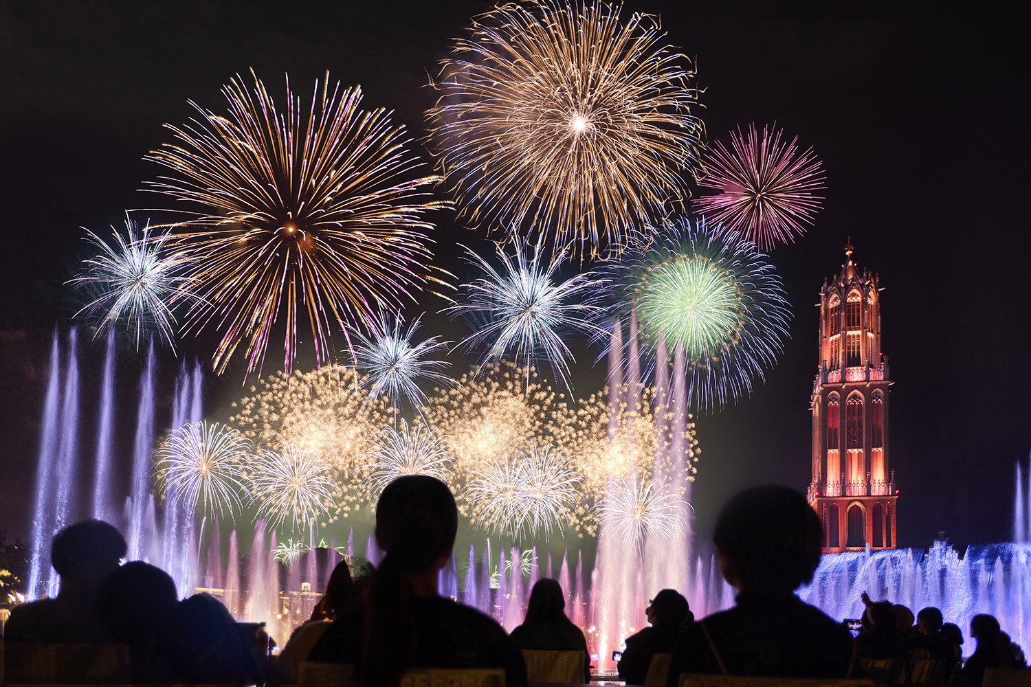 새해맞이, 하우스텐보스의 밤하늘을 화려한 불꽃놀이가 장식합니다.