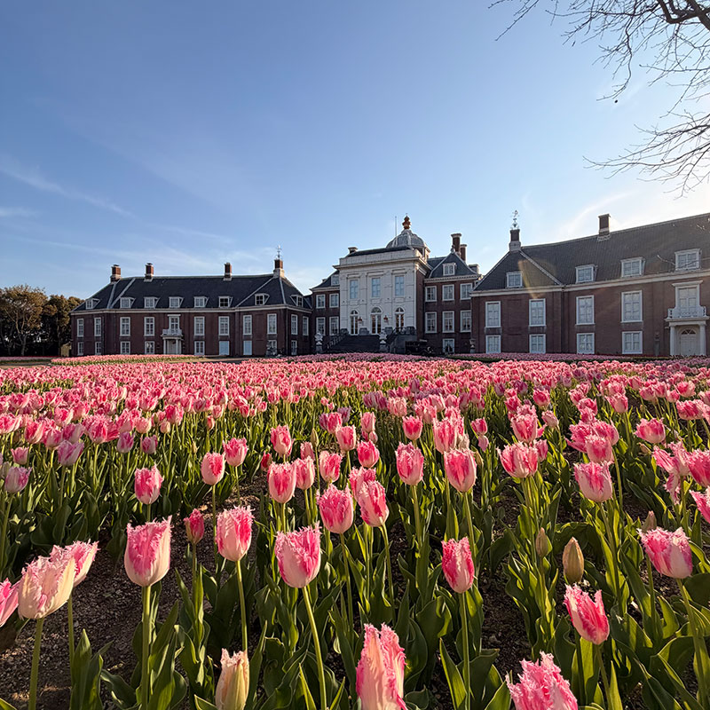 オランダの宮殿を忠実に再現した「パレス ハウステンボス」では色鮮やかなチューリップが異国情緒な雰囲気をさらに演出します。美しくデザインされた庭は唯一無二の空間です。
