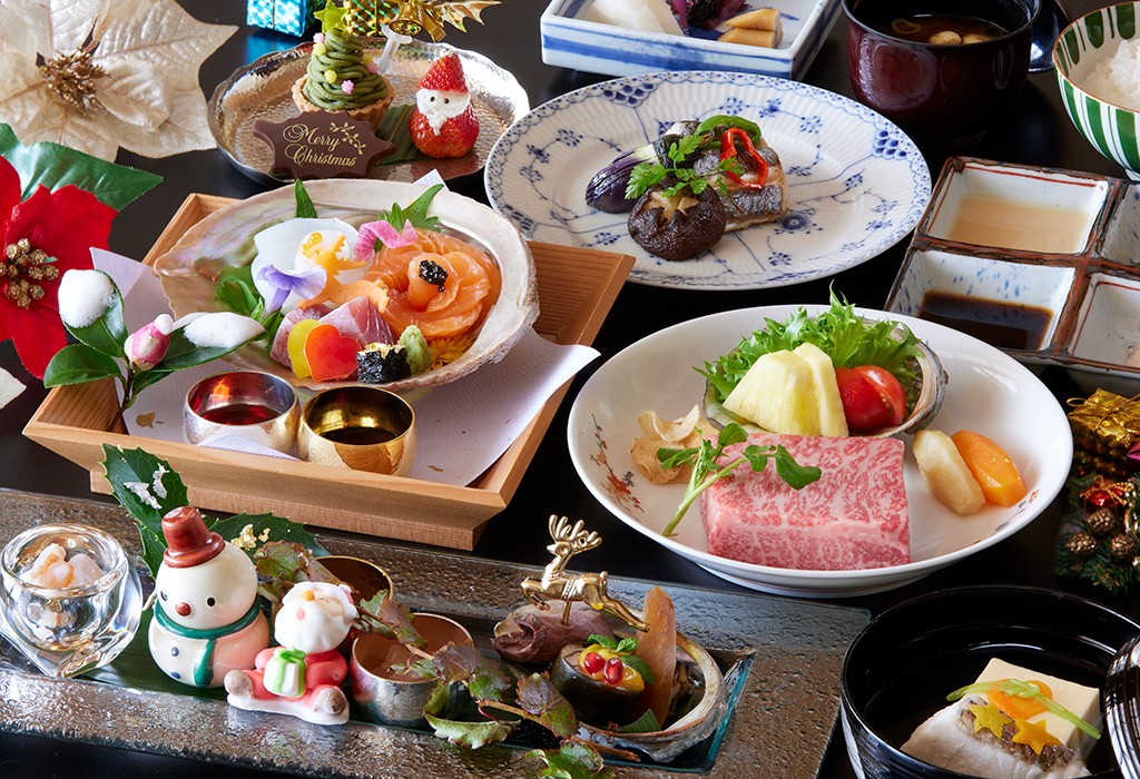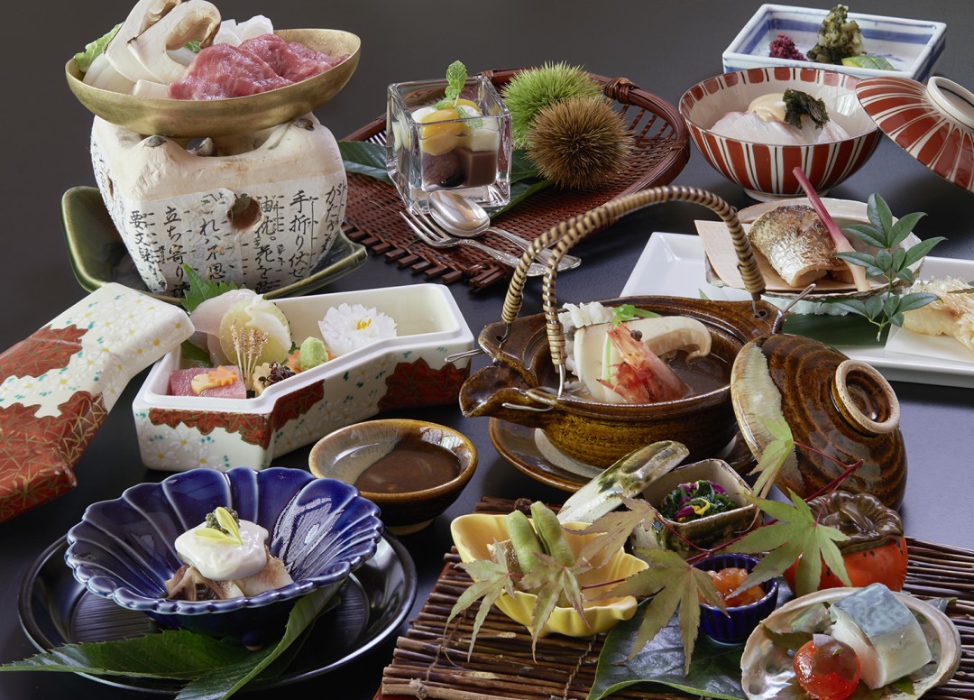 송이버섯과 배, 단풍 도미 등 가을의 미각을 사치스럽게 담은 계절 한정 특별 가이세키. 열매의 가을 특유의 제철의 미각을 마음껏 즐겨 주세요. 가격:23,000엔