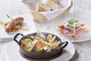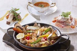 햄과 베이비 리프수프돼지고기 콩피해산물 빠에야 성수기는 메뉴가 변경될 수도 있습니다.