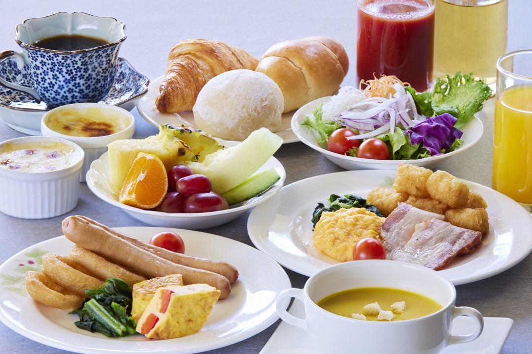 호텔 특제 갓 구운 빵, 계란 요리와 소시지 베이컨, 신선한 야채 샐러드 등 일식부터 양식까지.