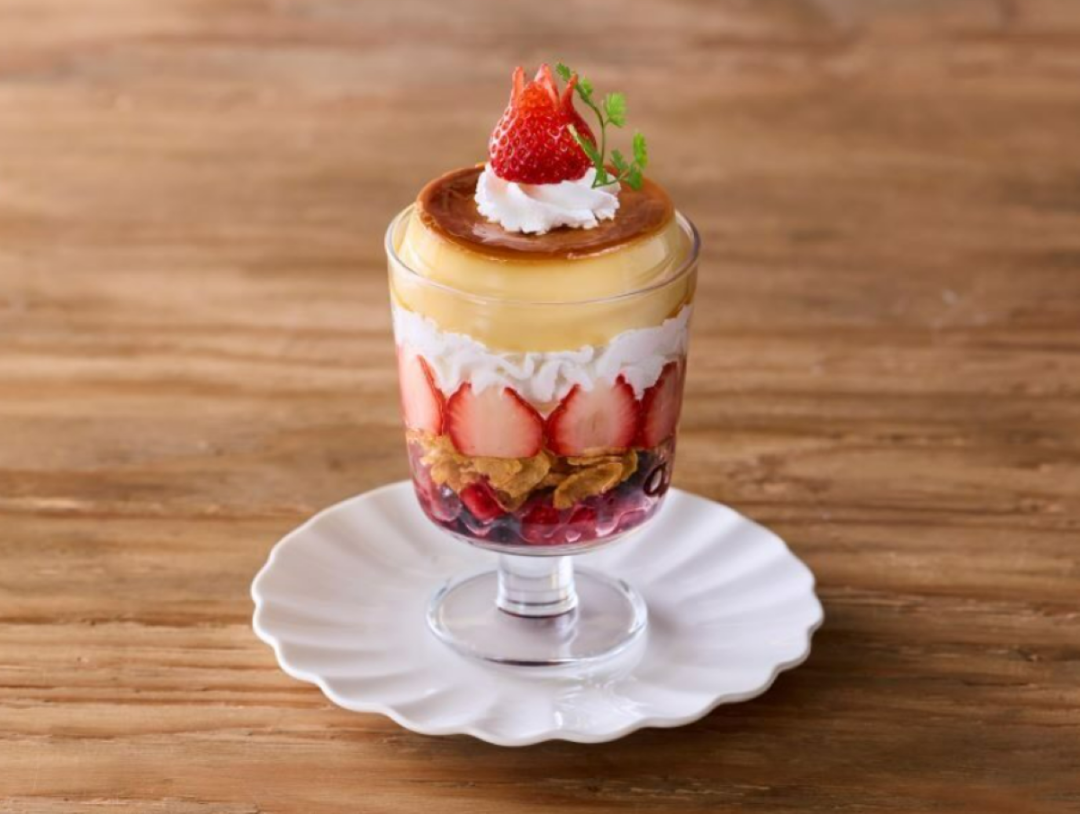 カスタードプリン・ミックスベリーに、チューリップ型の苺をあしらった、春を感じさせる見た目もかわいいプリン・アラモードです。 ※提供時間:11:00~17:00(平日は中間クローズあり) 価格:1,200円