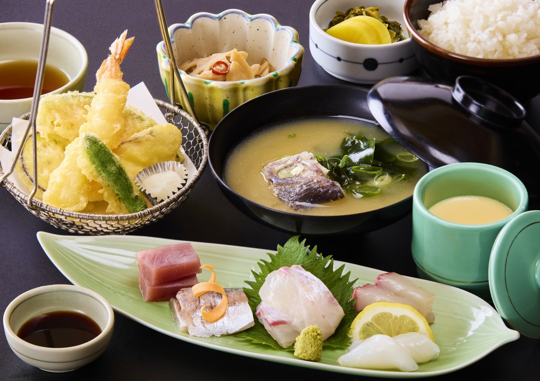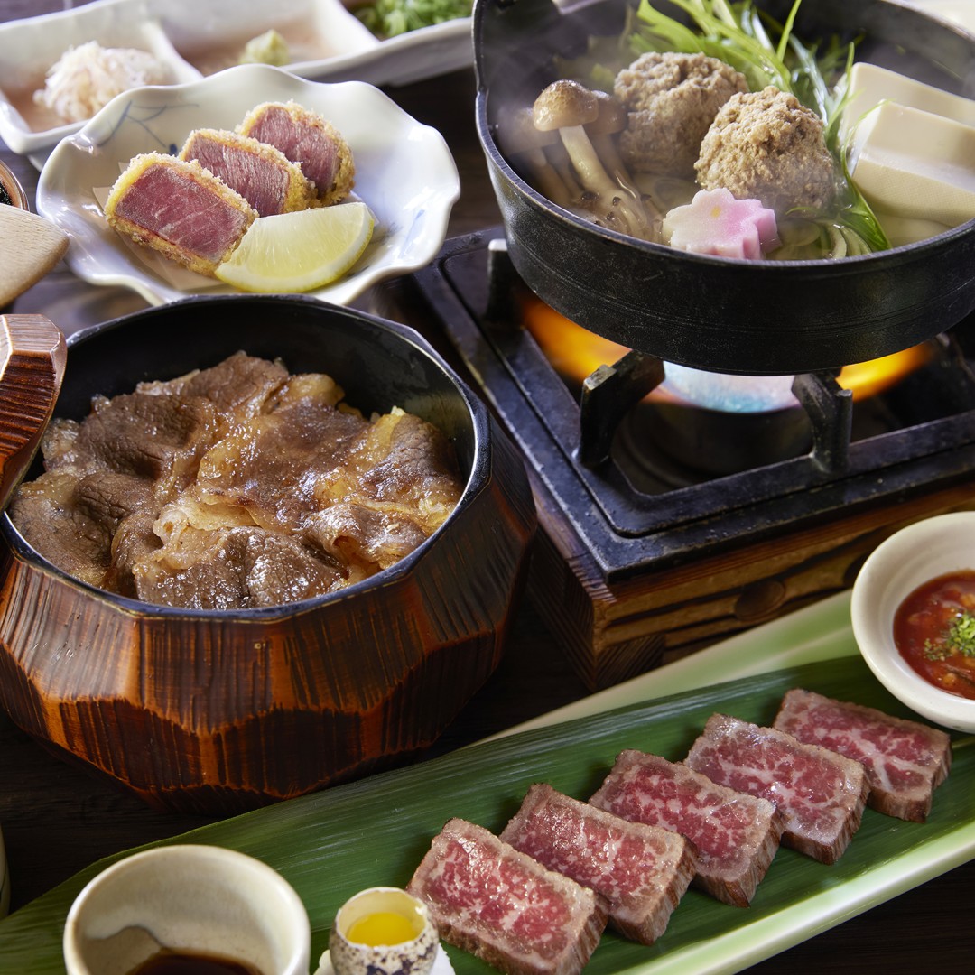 현지·나가사키의 제철 식재료를 사용한 정식 요리를 제공하는 일식당. 점심 추천 메뉴는 현지 사이카이산 돼지고기를 사용해, 2종의 빵가루로 싸서 튀긴 「돈카츠 」저녁 추천 메뉴는, 한 상으로 네 가지 맛을 즐길 수 있는 「나가사키 와규 삼매 정식」과「 나가사키 참동 차즈케 정식」. 어느 것이든 이곳에서만 맛볼 수 있는 특별한 요리들입니다. 회와 스키야키를 즐길 수 있는 메뉴도 준비되어 있습니다.