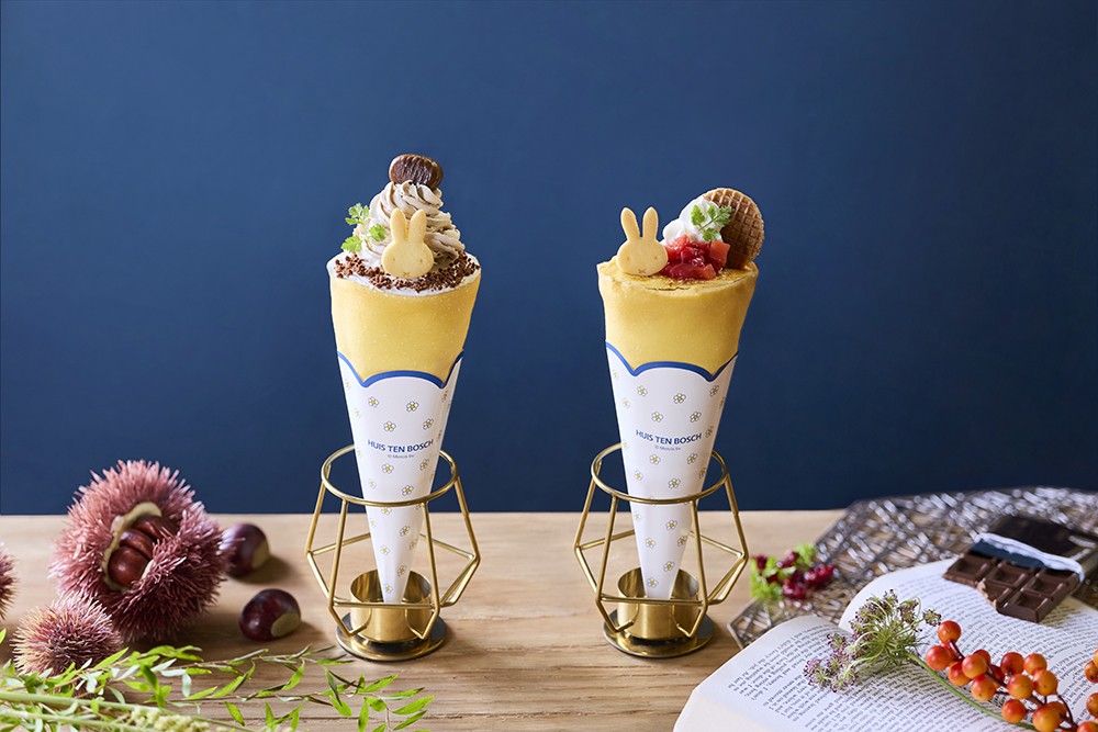 가을 같은 말론 크레페와 차가워 달콤한 커스터드를 사용한 브뤼레 크레페. 귀여운 미피의 쿠키를 장식한 외형도 맛도 즐길 수 있는 스위트입니다. 가격:각 1,000엔