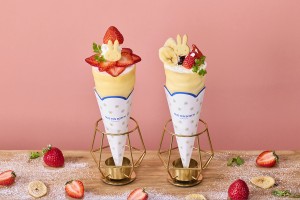 딸기가 듬뿍 들어간 새콤달콤한 크레페와 바나나와 딸기의 호화로운 크레페.