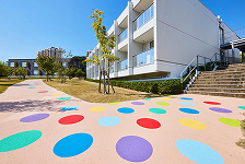 여러동으로 구성된 넓은 부지 내에 모던한 건축물이 산재해 있다.