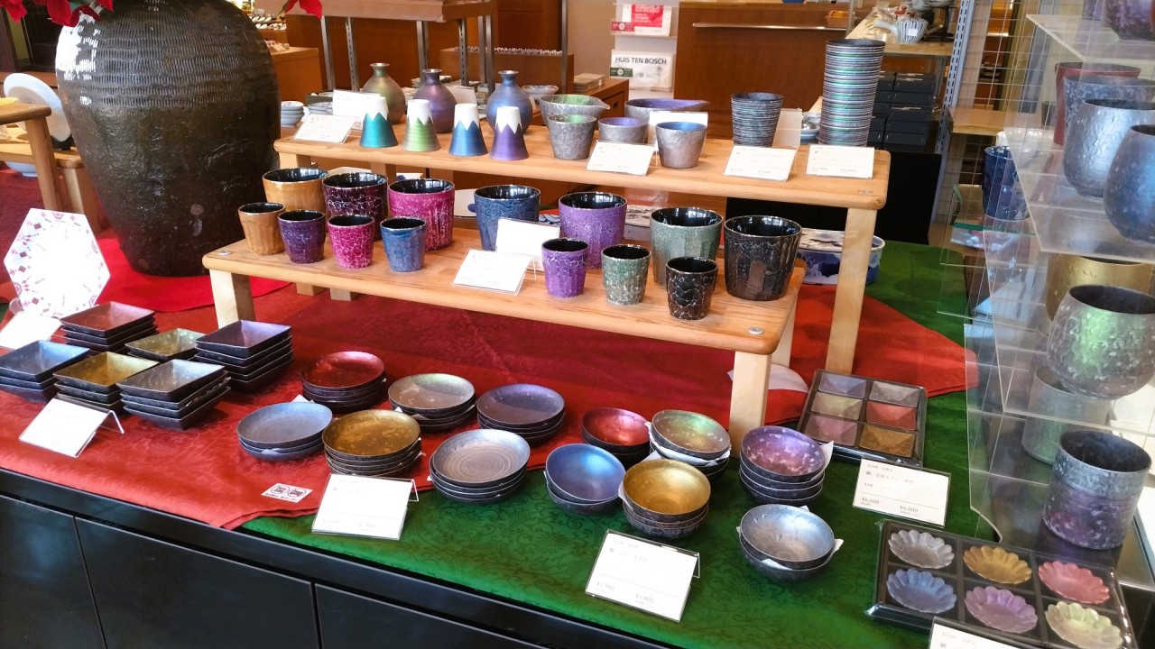선물로 환영받는 아리타산 도자기와 하사미야키의 그릇을 풍부하게 라인업. 아리타산 도자기의 대표격「산에몬(三右衛門)」이라고 불리는 이마에몬 가마, 가마에몬 가마, 겐에몬 가마를 비롯해, 코란샤나 후카가와 제자 등의 유명 작품들이 모여 있습니다. 캐주얼하게 사용할 수 있는 하사미야키도 인기입니다.