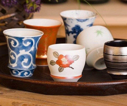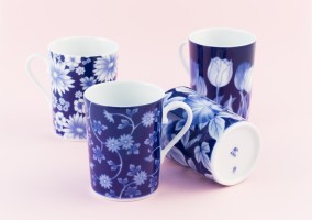藍色のトーンが美しく、レンジでもお使い頂けるマグカップ。 カップの底には、香蘭社のマークと花言葉が入っています。