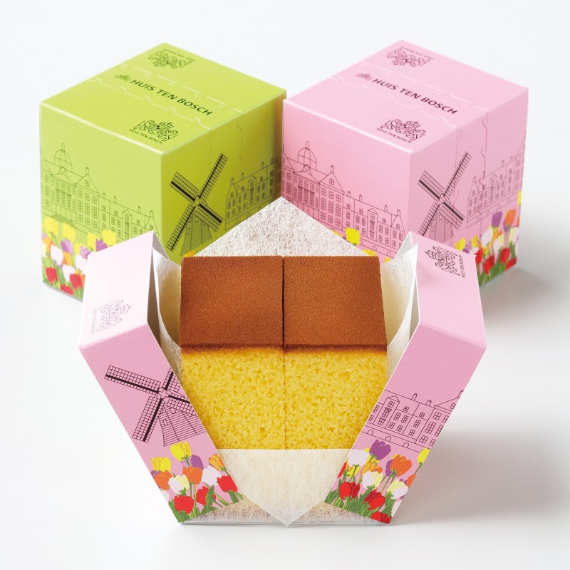寛永元年(1624年)創業のカステラの銘店。伝来の古法を守り、職人が丹精込めて焼き上げるカステラは、味・香り・口あたりのすべてが一級品。まさに手わざならではの味わいです。可愛いパッケージが人気のフクサヤキューブに、ハウステンボス店限定デザインも仲間入りしました。