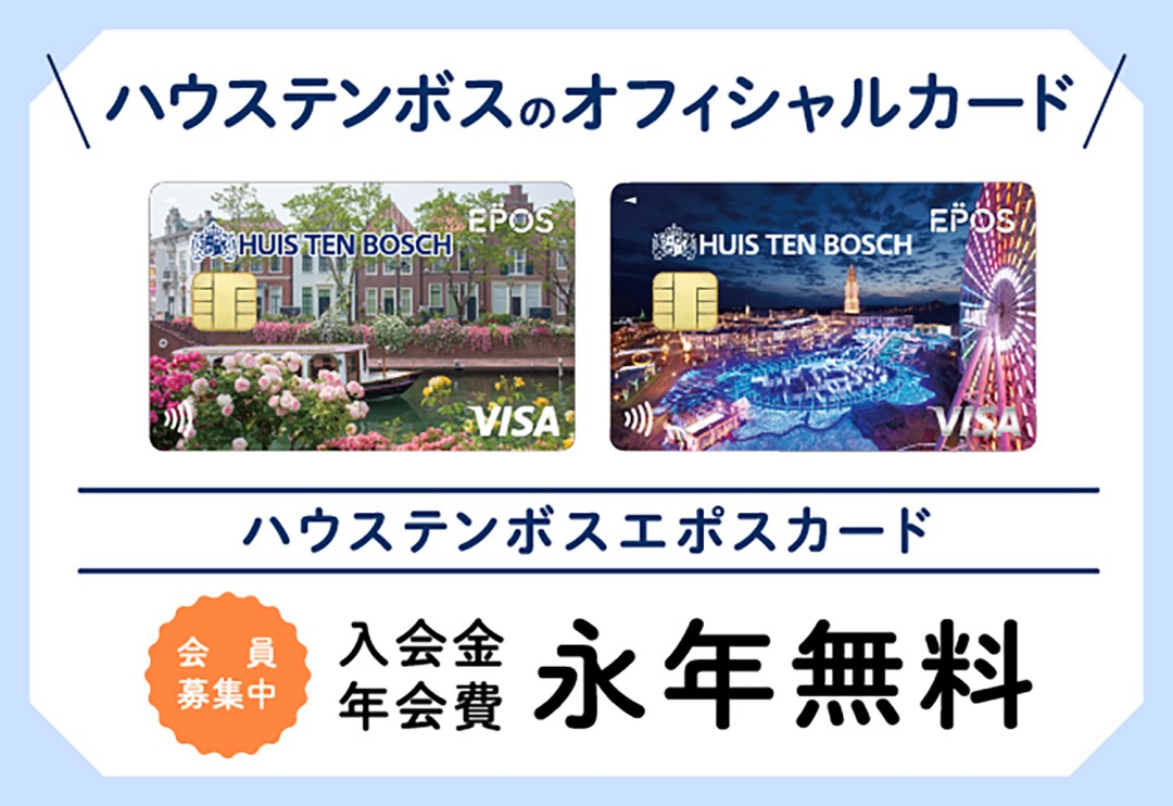 1DAY패스포트 구입시나 장내의 숍 ·레스토랑에서 할인을 받고, 회원 한정의 숙박 플랜도 준비되는 등, 충실한 특전이 매력의 하우스텐보스 에포스 카드. 입국구의 전용 카운터라면, 티켓면 전체에 하우스텐보스 다운 경치가 디자인된 한정 카드를 얻을 수 있습니다.