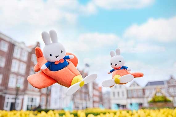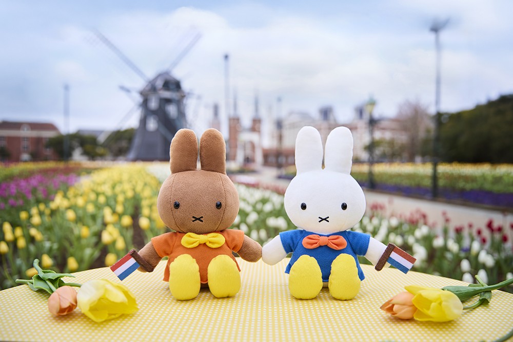 ハウステンボスらしいお花を持ったミッフィーが、ぬいぐるみカチューシャで登場。