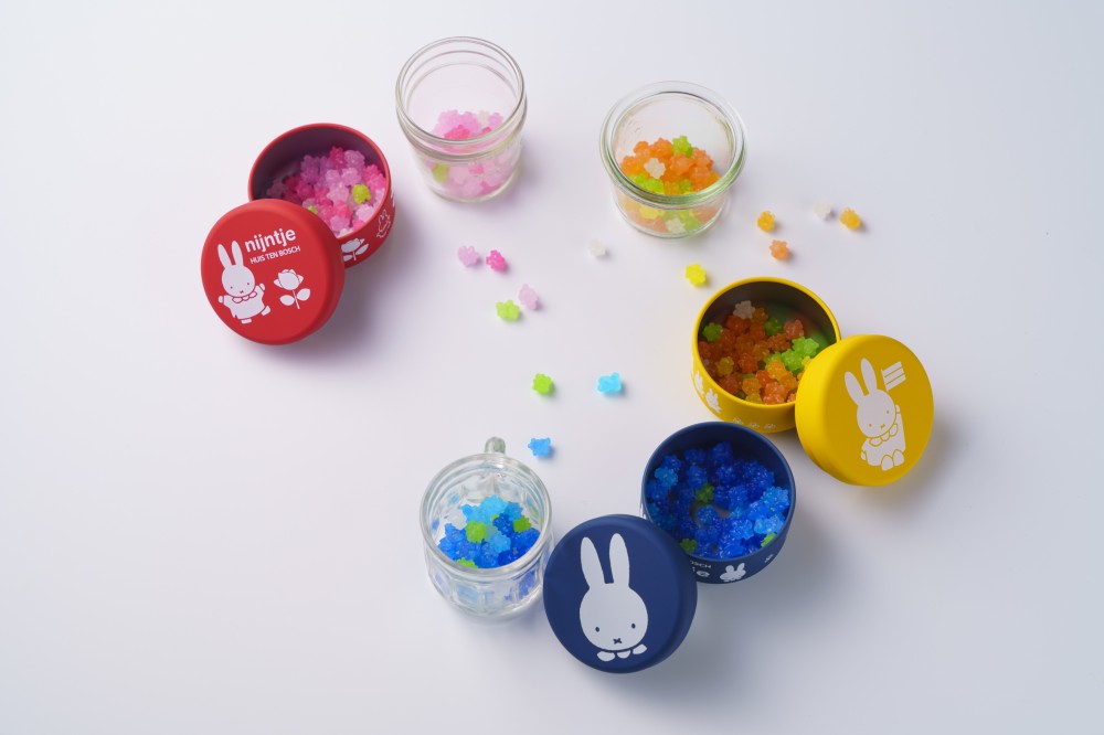 ハウステンボスらしいお花とオランダの伝統的な模様をイメージしたデザインの缶に、ミッフィーの形をしたクッキーが入っています。