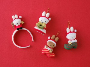 クリスマスブーツから顔をのぞかせるマスコットや、リースを手にしたクリップ、サンタをイメージしたミッフィーがのったカチューシャが登場。