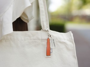 コラボレーションロゴがデザインされたトートバッグ。お出かけにぴったりのサイズ。キーホルダーとセットでつけて楽しもう。